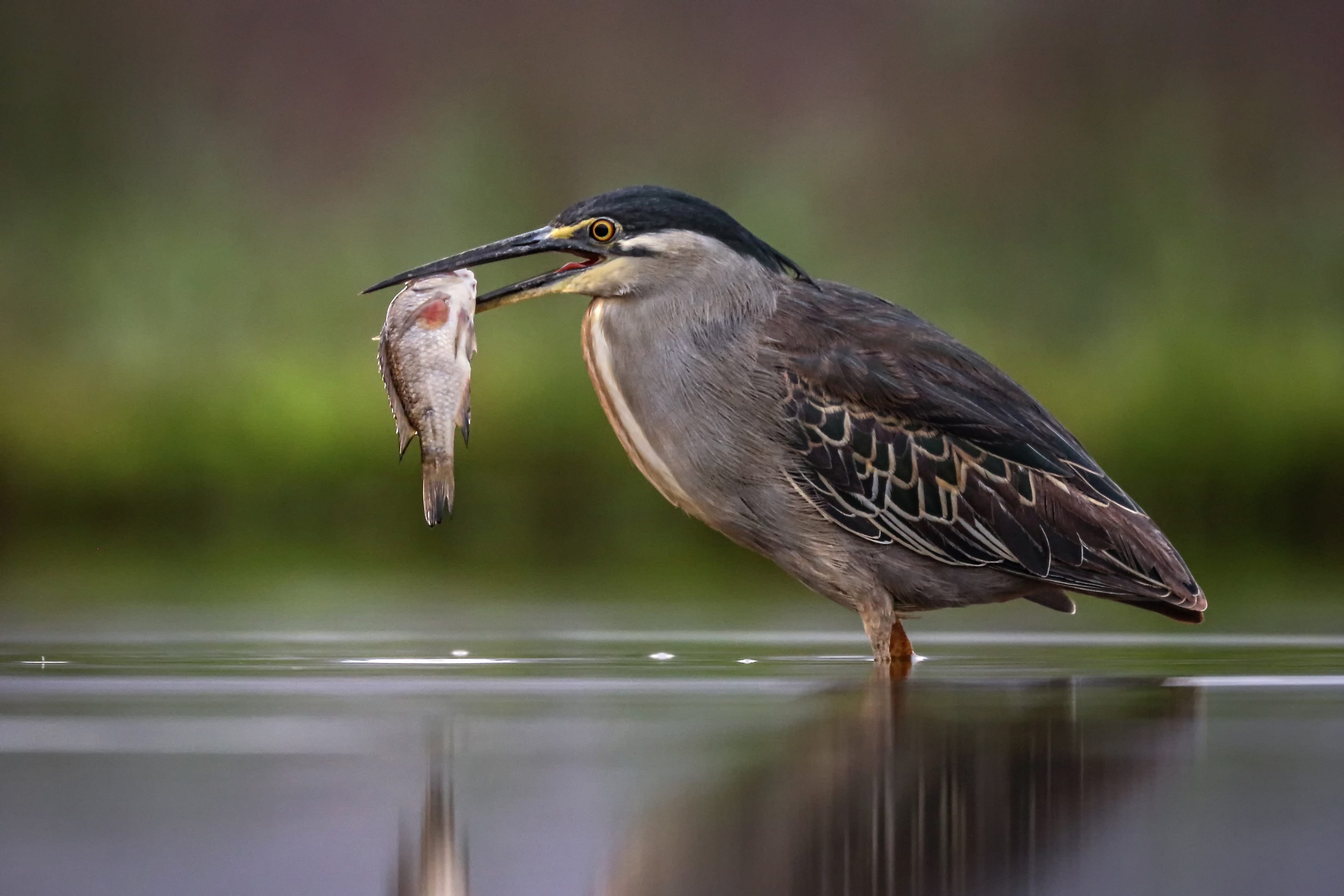 In the very early morning light a Green Heron already has his first catch of the day.